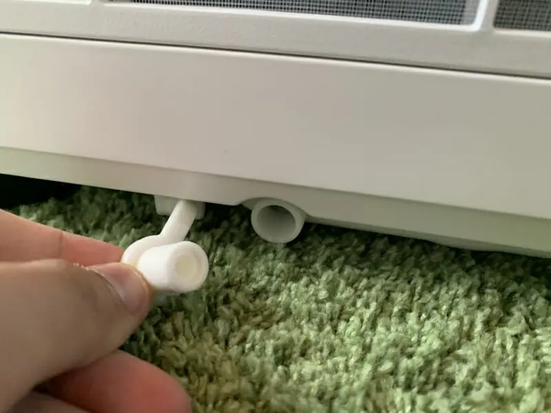 ▼下部には、除湿運転でクーラー内部に溜まった水を排水するためのバルブが用意。