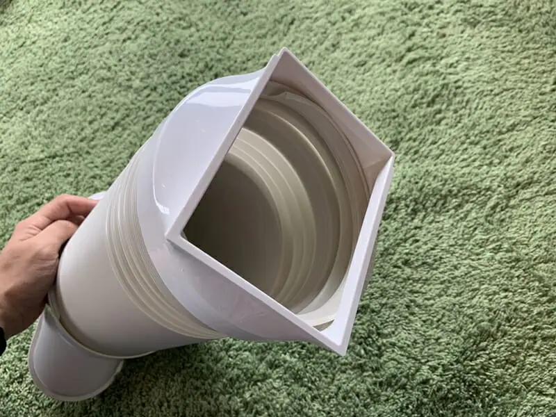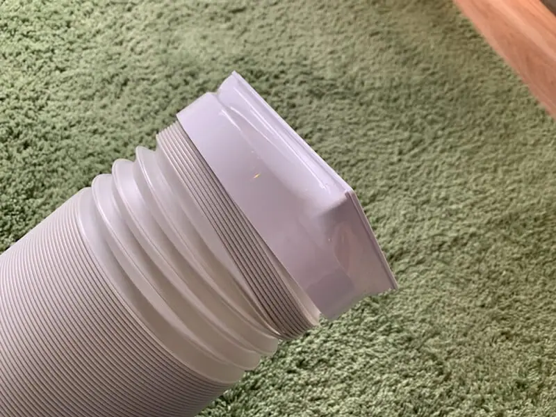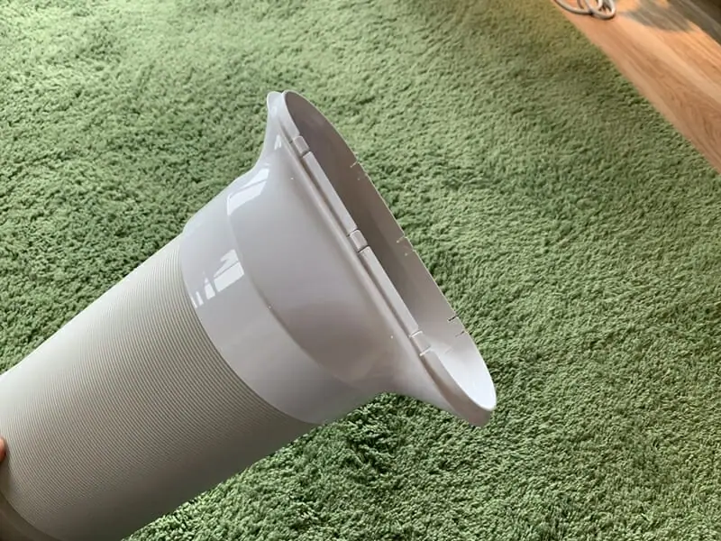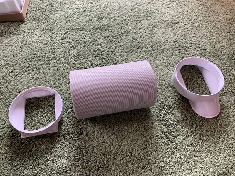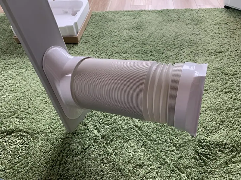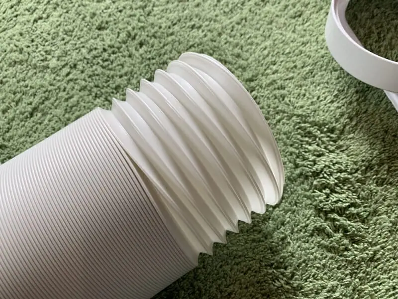 ▼排熱ダクトは蛇腹状に折りたたまれており、引っ張ることで延長が可能だ。