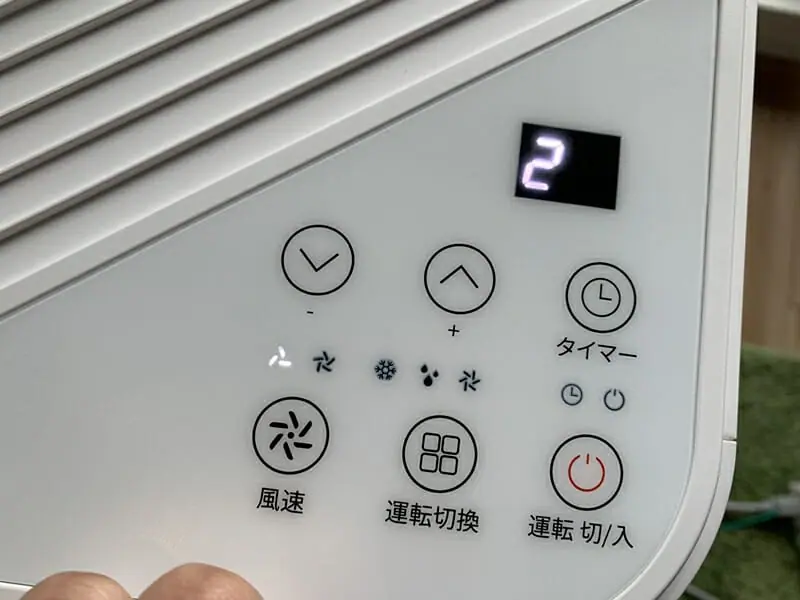本製品は、上部ボタンもしくはリモコンを操作することで、風力や運転モードを切り替えることが出来る。