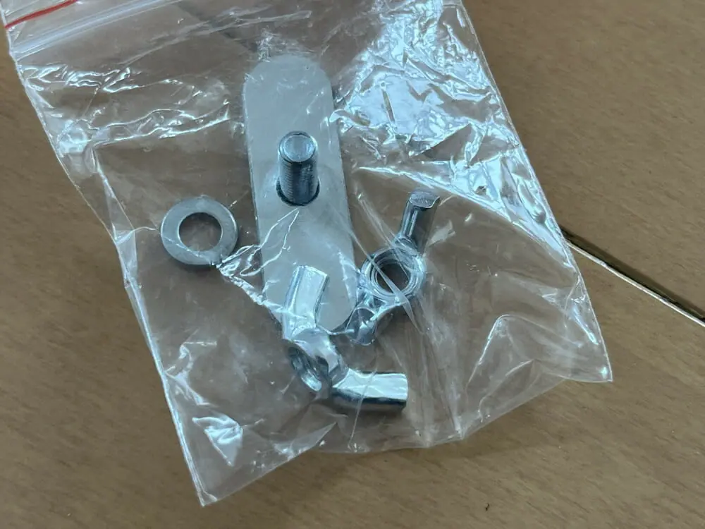 ▼遠隔操作用のリモコンと、窓パネル取付用の金具&ビス一式が付属。