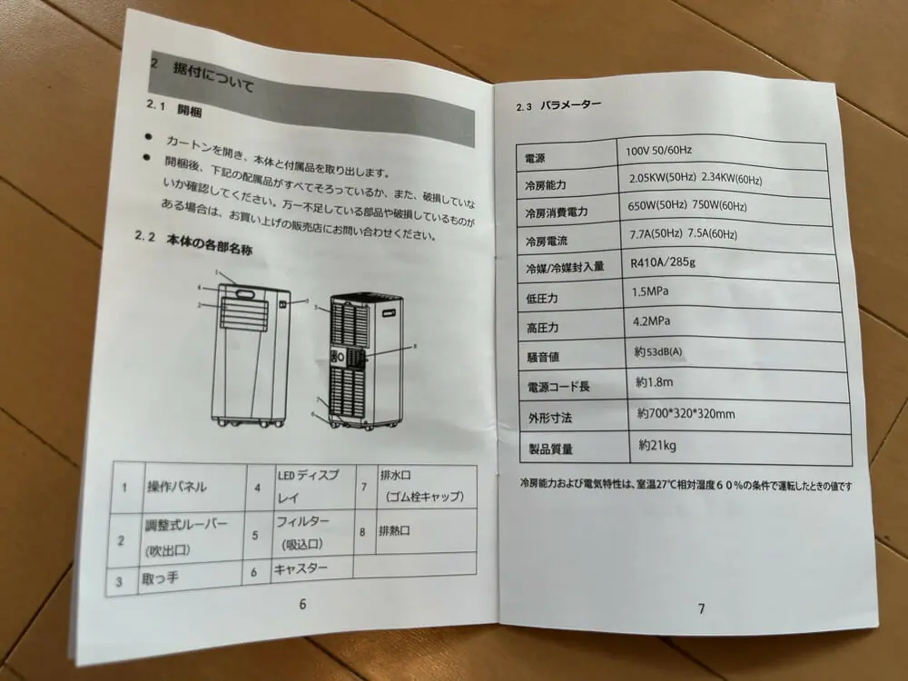 2.05kW(50Hz)/ 2.34kW(60Hz)の冷房能力を擁しており、目安として6~8畳前後の広さの空間を涼しく保つことが出来る。家庭用の100Vコンセントさえあれば動作する点も嬉しい。