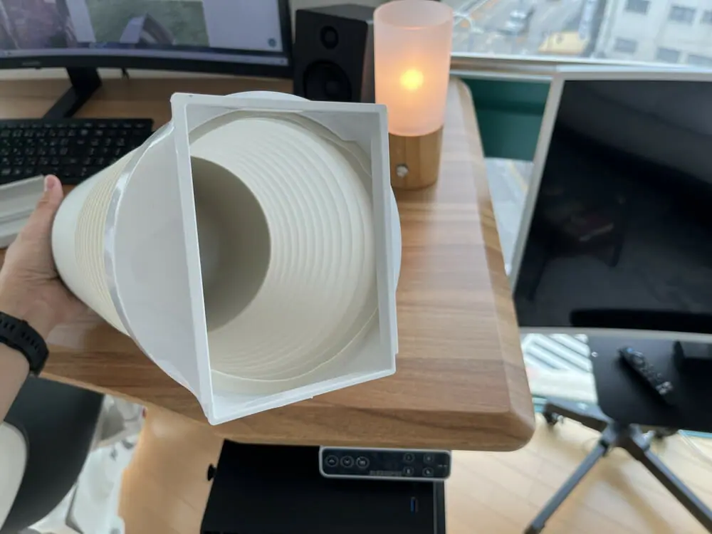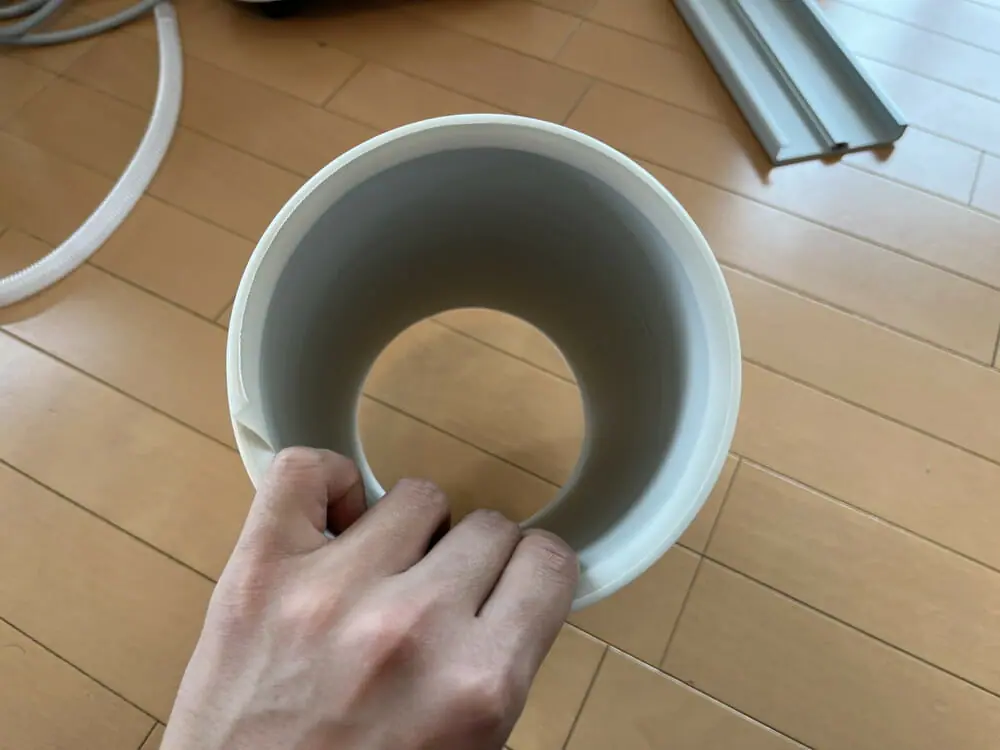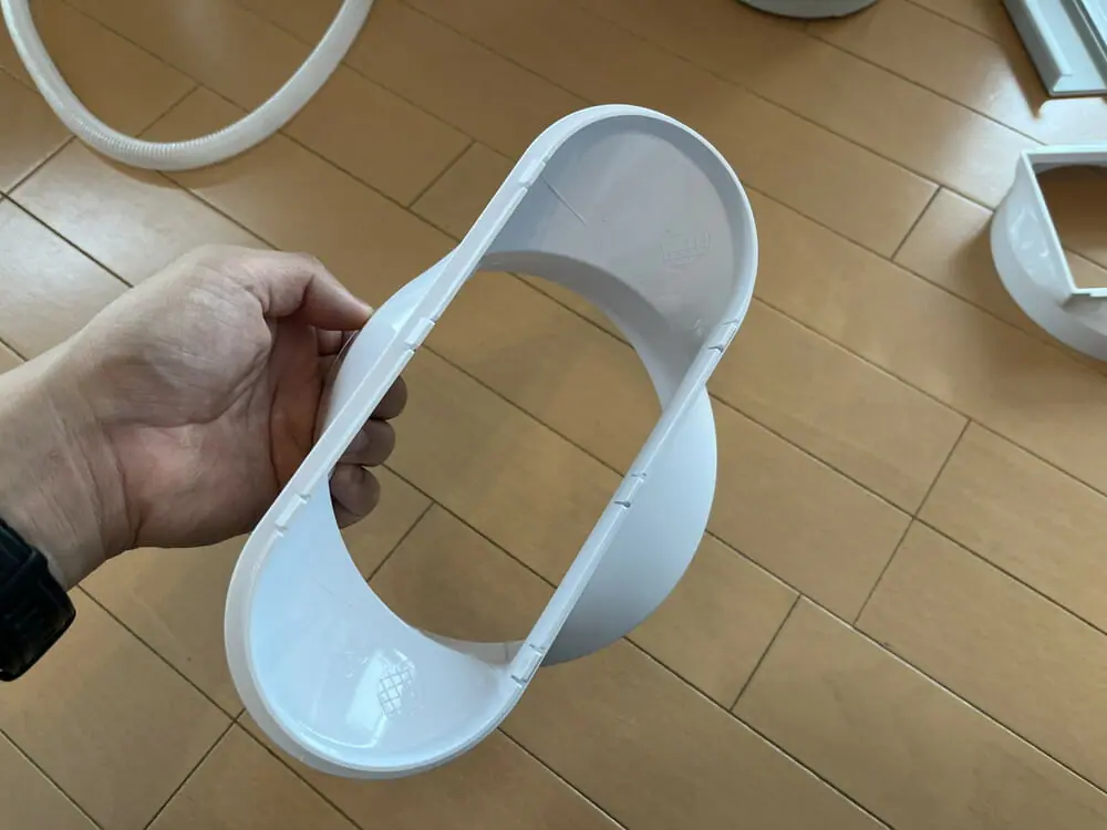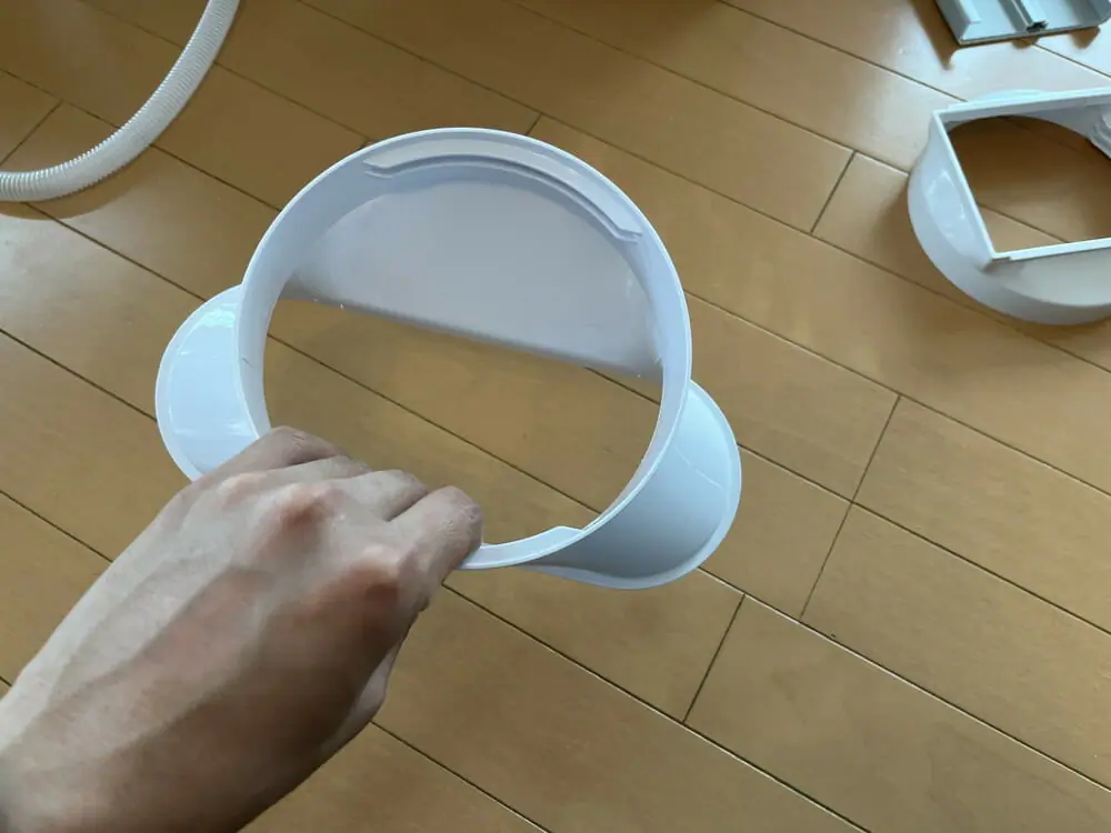 まず最初に、排熱ダクトの両側に付属のジョイントを接続する。