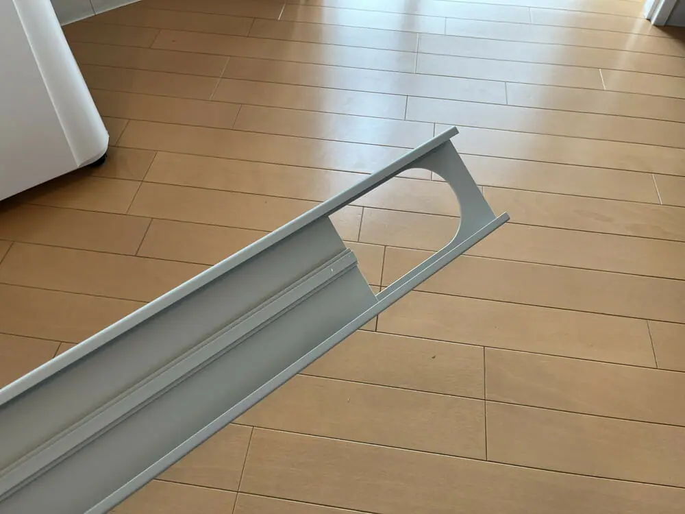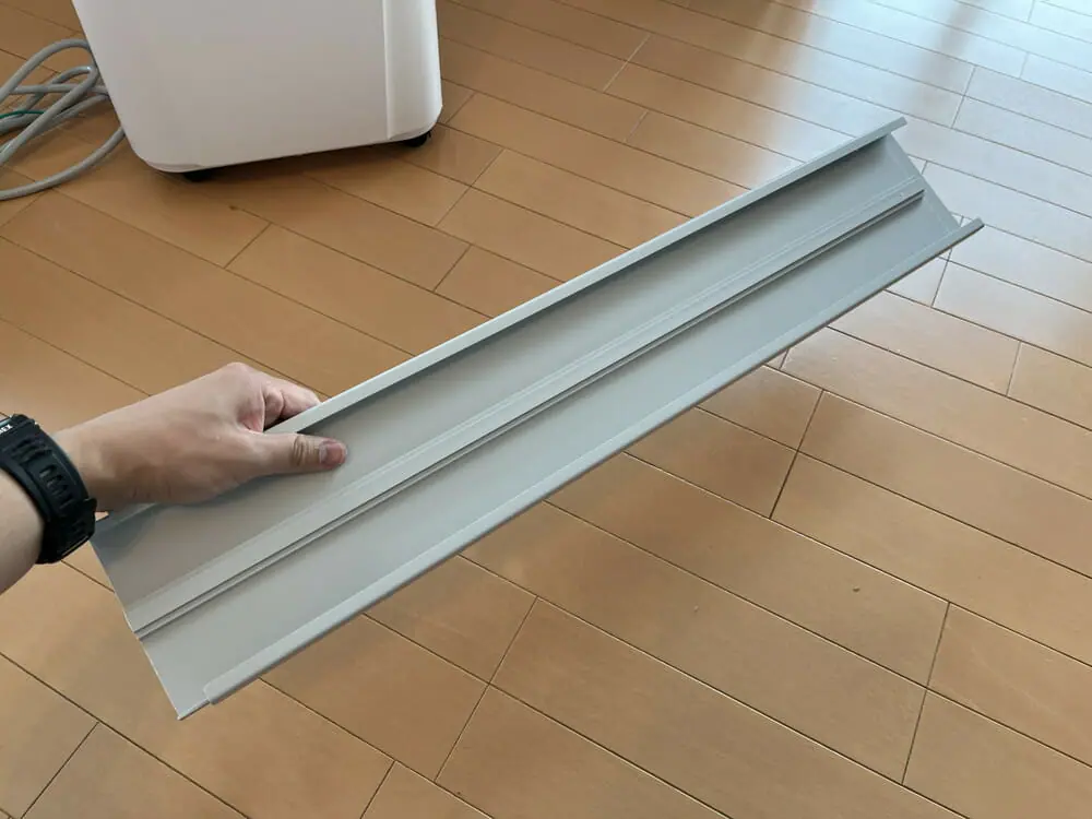 ▼窓枠に排熱ダクトを固定するための窓パネル&レール。