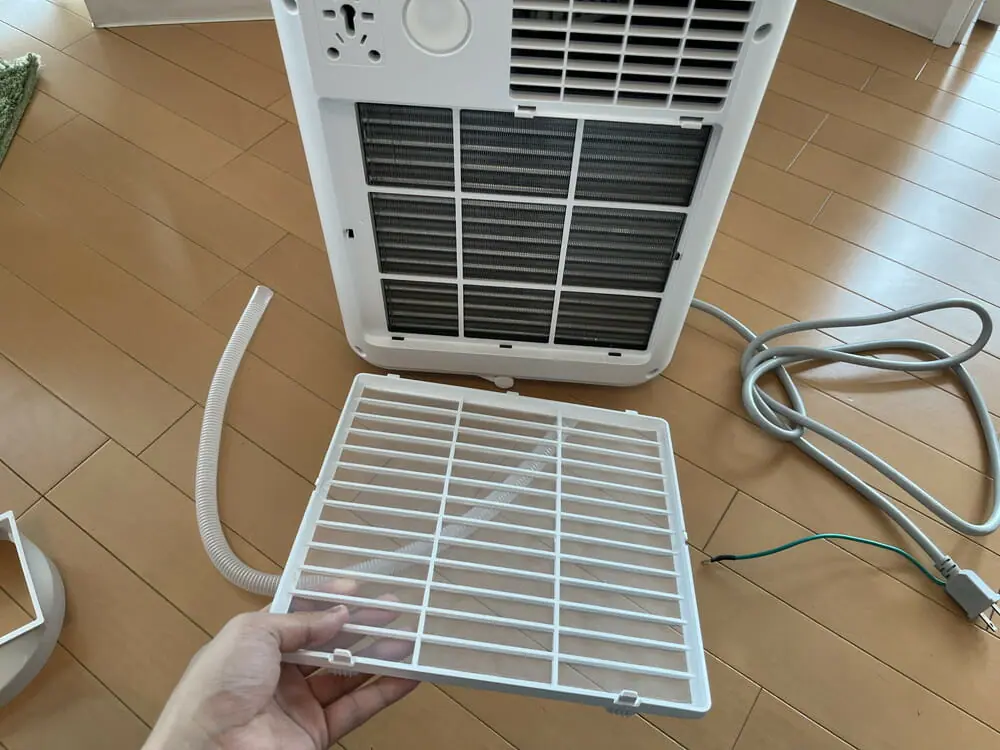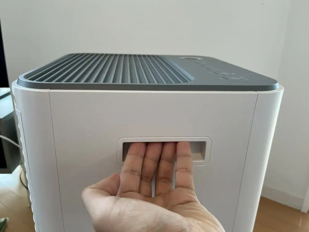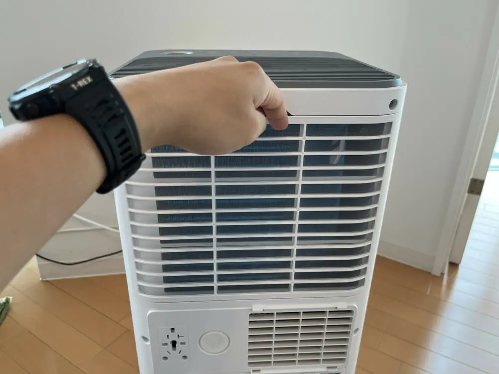 内部には貯水タンクを内蔵しており、除湿運転で取り除いた水分を溜めておくことが可能だ。