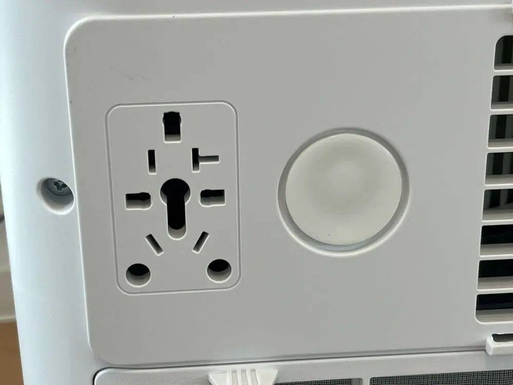 背面には大きな吸排気口が空いているほか、コンセントマネージャーやドレン水を直接排水するための穴が用意されている。