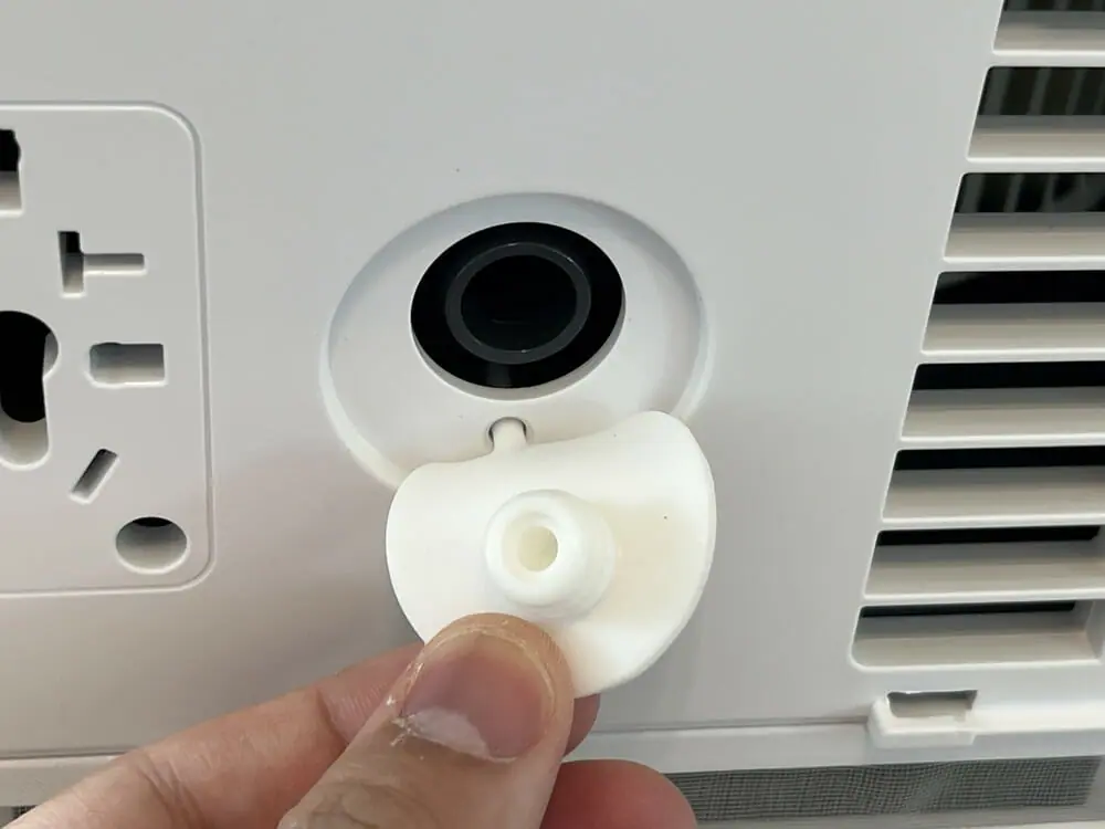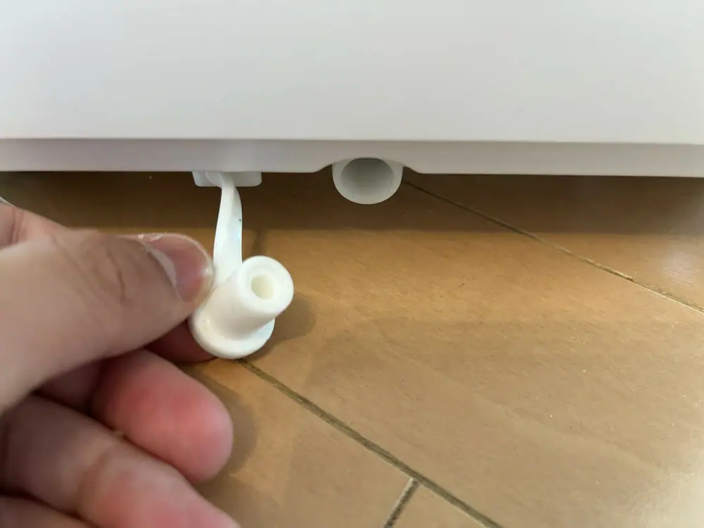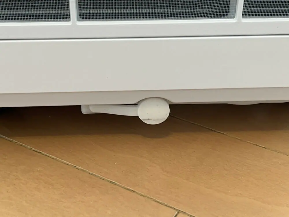▼下部には、除湿運転でクーラー内部に溜まった水を排水するためのバルブが用意。