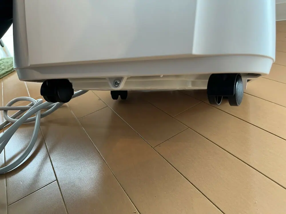 ▼そして底面には4つのキャスターが搭載。20kg超えの重いスポットクーラーを手で押してラクラク移動させることが可能だ。