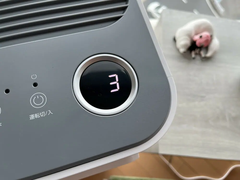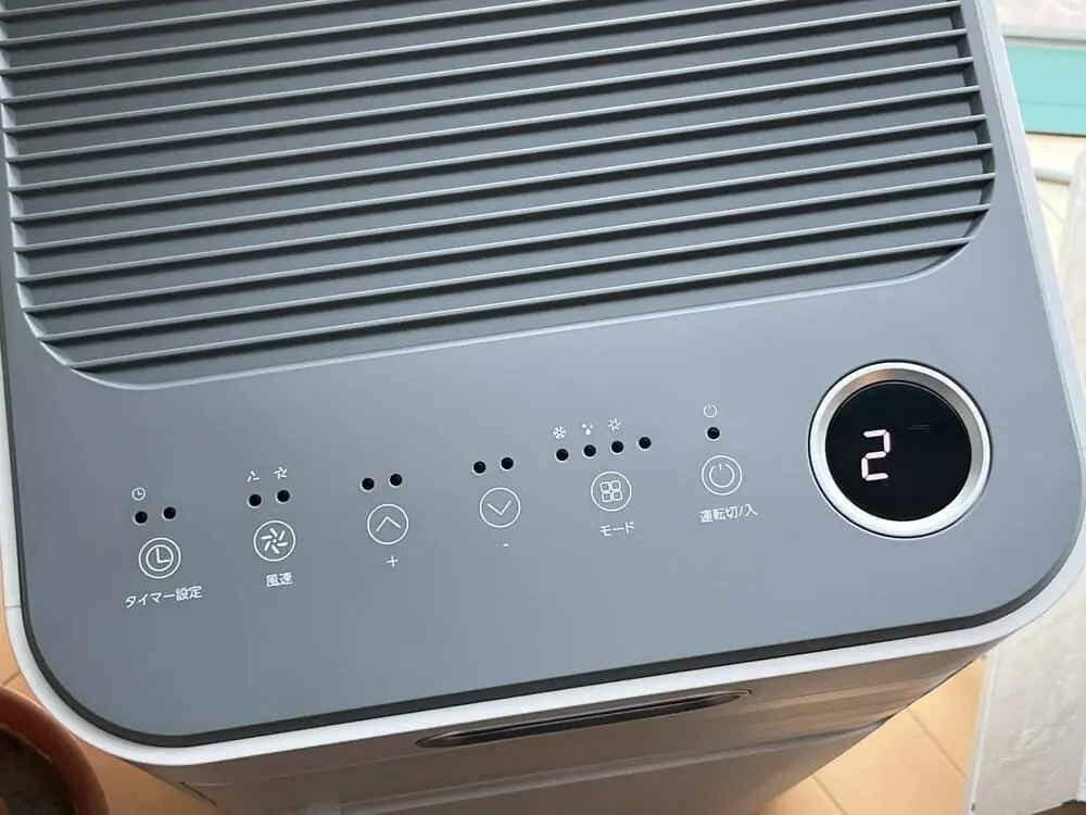 本製品は、上部ボタンもしくはリモコンを操作することで、風力や運転モードを切り替えることが出来る。