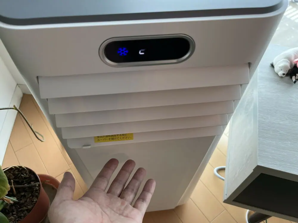 冷房モードで稼働させると、冷たい風が前方より吹き出てくる。