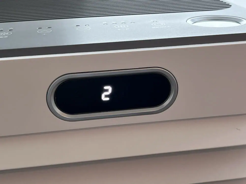 ▼正面上部にはディスプレイが搭載。その下には送風口が開いており、ブレードを開閉して送風する向きを調節することが可能となっている。