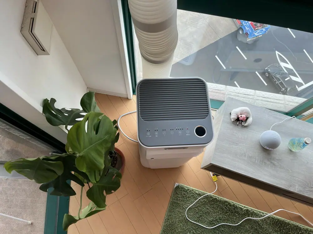 窓さえあれば、付属のダクトを使用して簡単に排気できるため、壁貫通工事や室外機の設置なども必要ない。