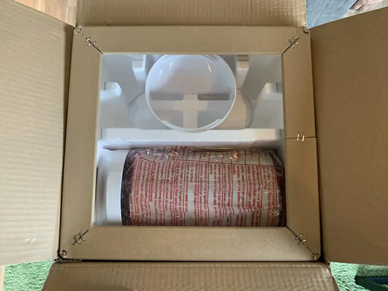 ▼外箱の様子。20kgを超える製品のため、運搬には注意しよう。