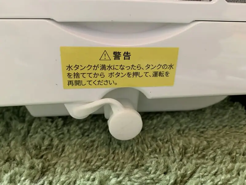 取り除かれた水分はスポットクーラー内部のタンクに溜まっていき、満タンになる直前で運転が自動停止する仕組みとなっている。