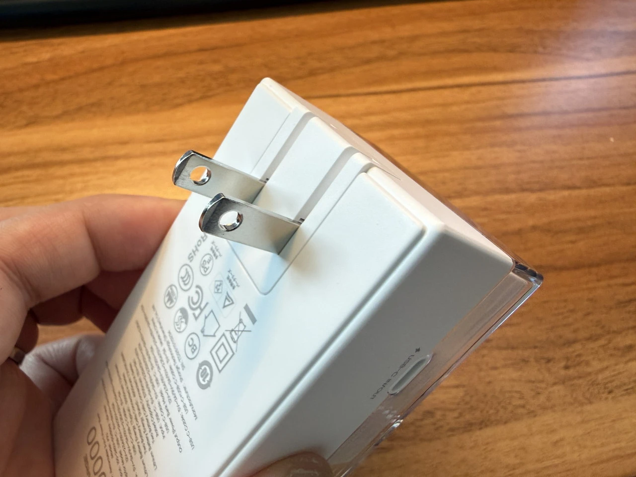 そして下部にはコンセントプラグが収納されており、展開してコンセントに直挿しして充電できます。