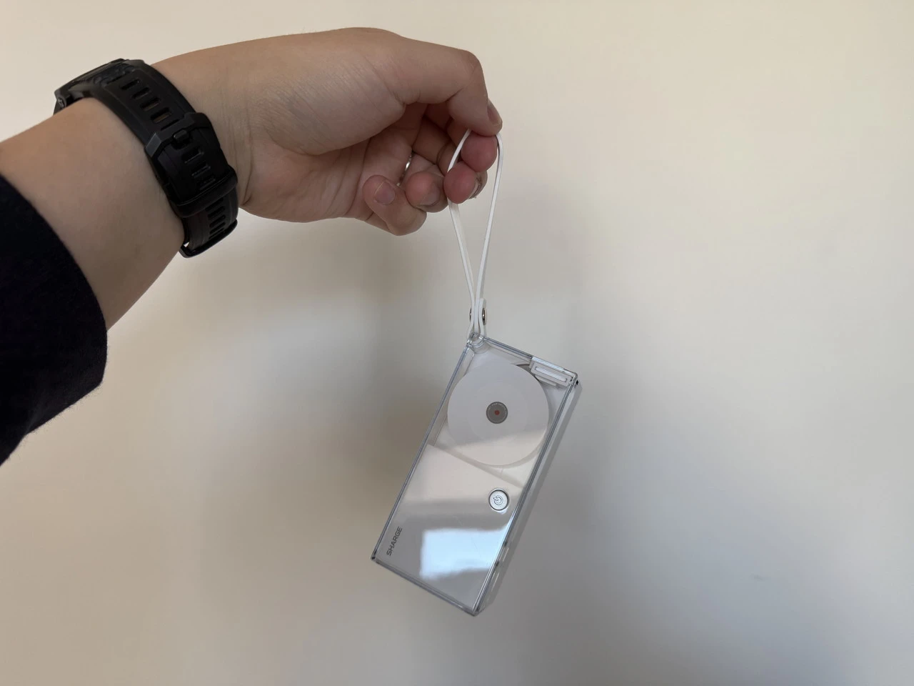 SHARGE 格納式 3-in-1 モバイルバッテリー本体は、透明感のあるボディとなっており、内蔵されているUSB-Cケーブル巻取り部が見える設計です。