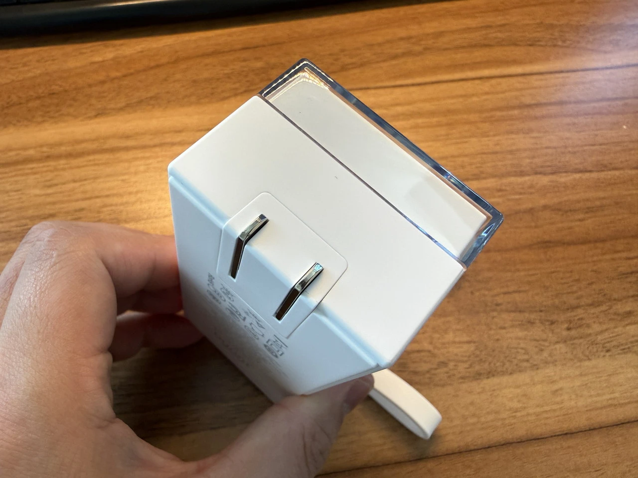 コンセントに挿すだけで壁充電器として機能しながら、同時に本体の内蔵バッテリーも充電されます。外出前にコンセントに挿しておくだけで、使う頃には本体も満充電に近い状態になっていることが多く、準備の手間を減らしてくれます。