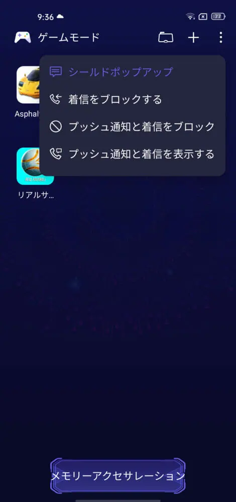 ▼ゲーム中に着信拒否や通知ブロック設定ができる