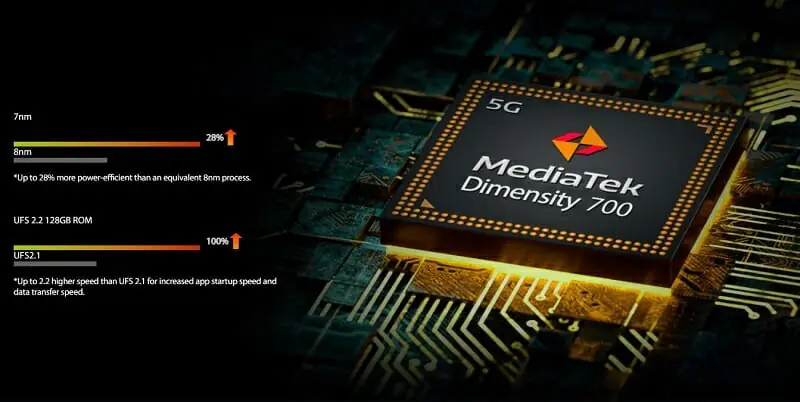 ▼5G対応のDimensity 700搭載でミドルレンジクラスの性能