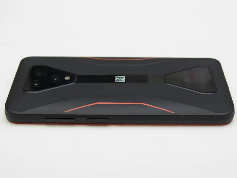 本体のデザインは、Xiaomi傘下の「Black Shark 3」をほぼ踏襲したもの。カメラが3眼で逆三角形に並んでいること、下部にも三角形のデザインが入っている点、横のストライプデザインなど、一見したらBlack Shark 3そのものだ。