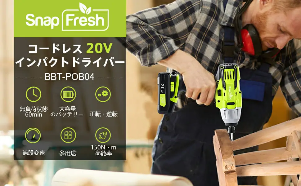 今回はSnapFresh製のコードレスインパクトドライバーを入手しました、この商品は比較的安価な製品ですが、スペックはプロ仕様になっています。
