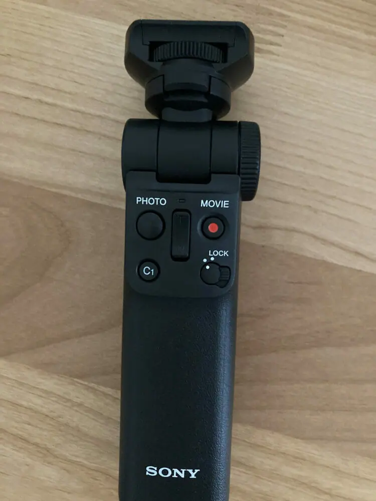 ▼グリップの正面です。シャッター、録画、ズームボタンやC1ボタンが搭載されています。カメラとはBluetooth接続するので、ケーブルはありません。