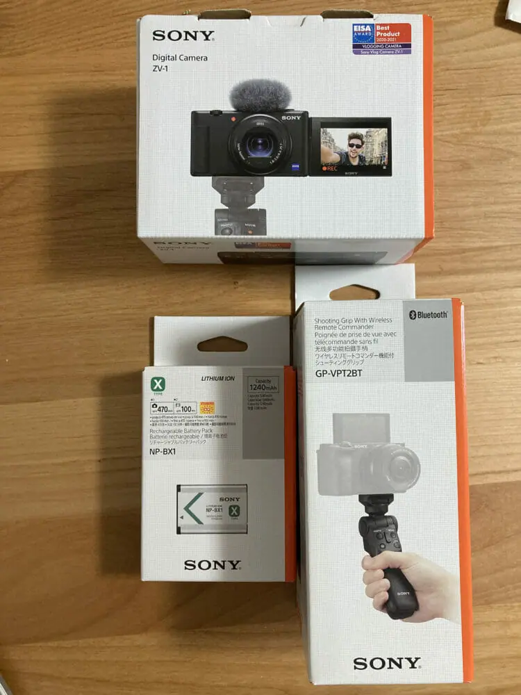 今回は本体に加えシューティンググリップ、サブバッテリー1個がセットになっている、ZV-1Gの方を購入しました。