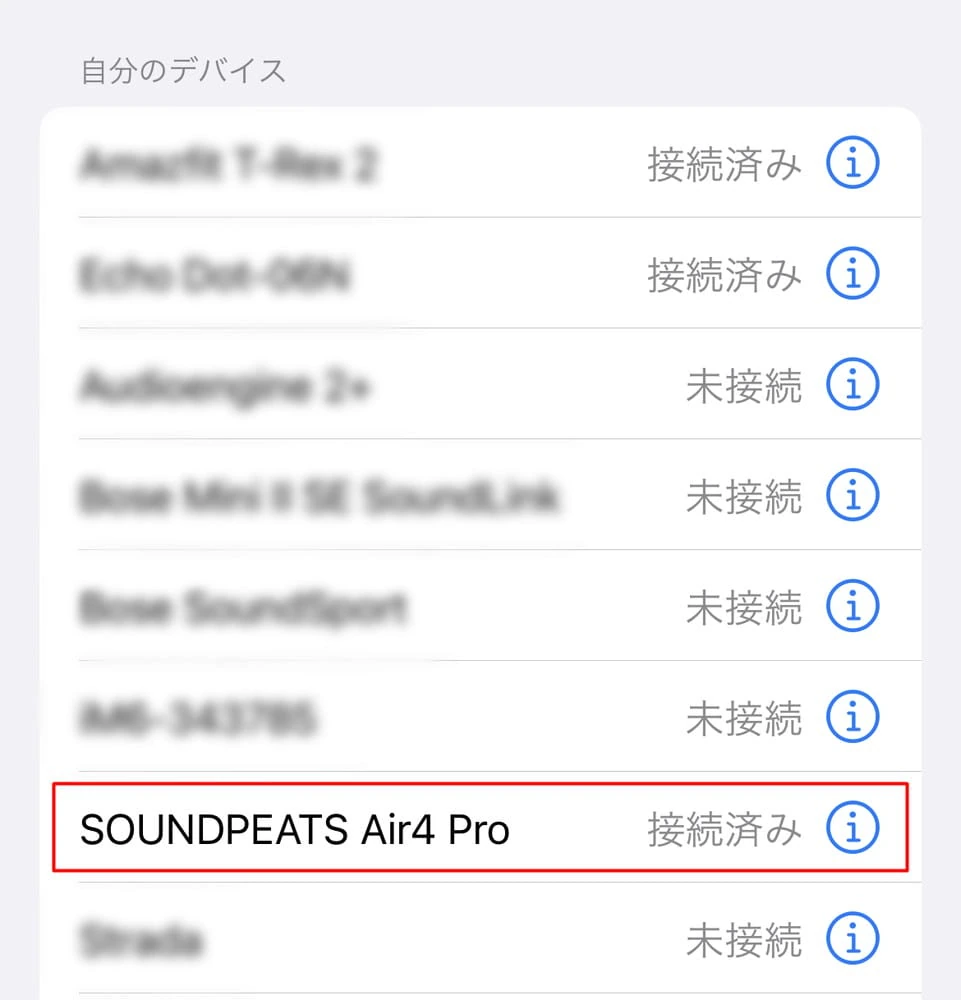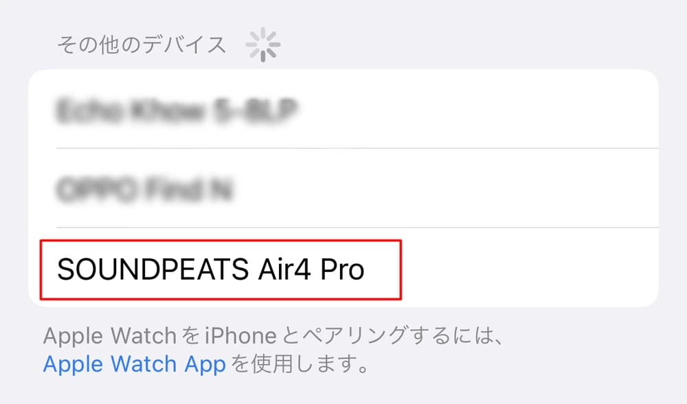 デバイス側で "SOUNDPEATS Air4 pro" が表示されるので、選択することで接続(ペアリング)が完了する。