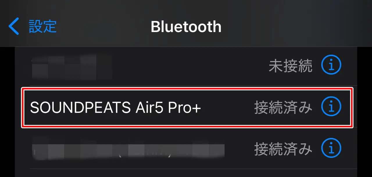 するとデバイス側で "SOUNDPEATS Air5 Pro+" が表示されるので、選択することで接続(ペアリング)が完了します。