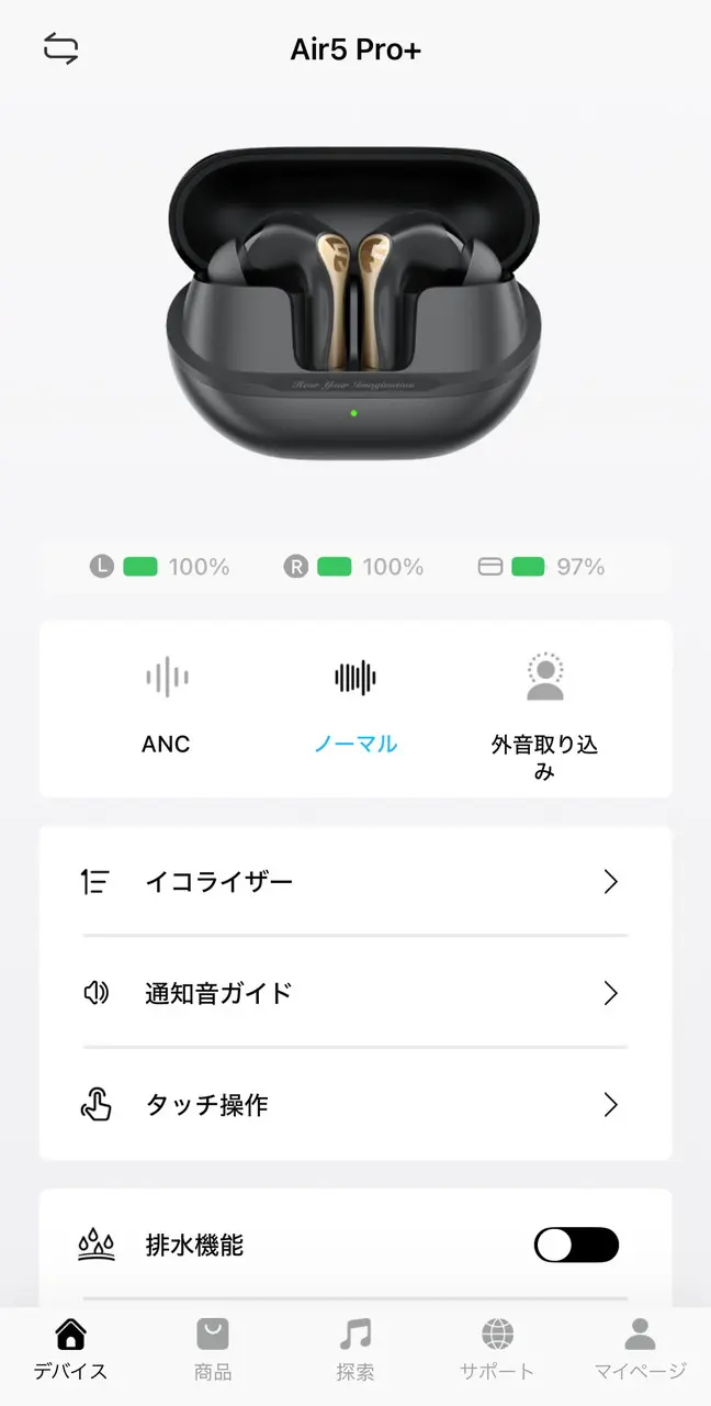 ちなみに、本製品にはiOS・Android対応の公式アプリ(無料)が用意されており、デバイスにインストールしておくことでイヤホン機能の様々な調節を行うことができます。