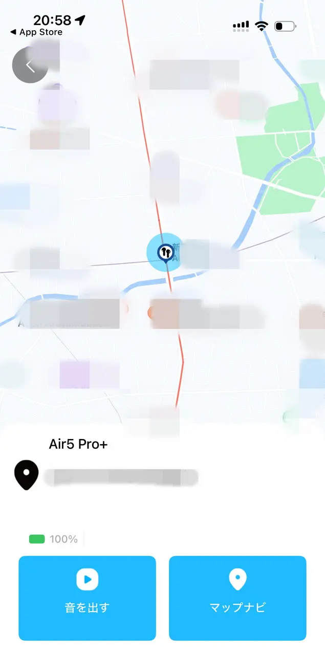 そして「イヤホンを探す」機能も用意。マップ上にイヤホンの位置が表示されるほか、イヤホン本体から大きな音を発生させて位置を特定することができます。イヤホンがどこに行ったのか分からない場合に、見つけ出すのに便利です。