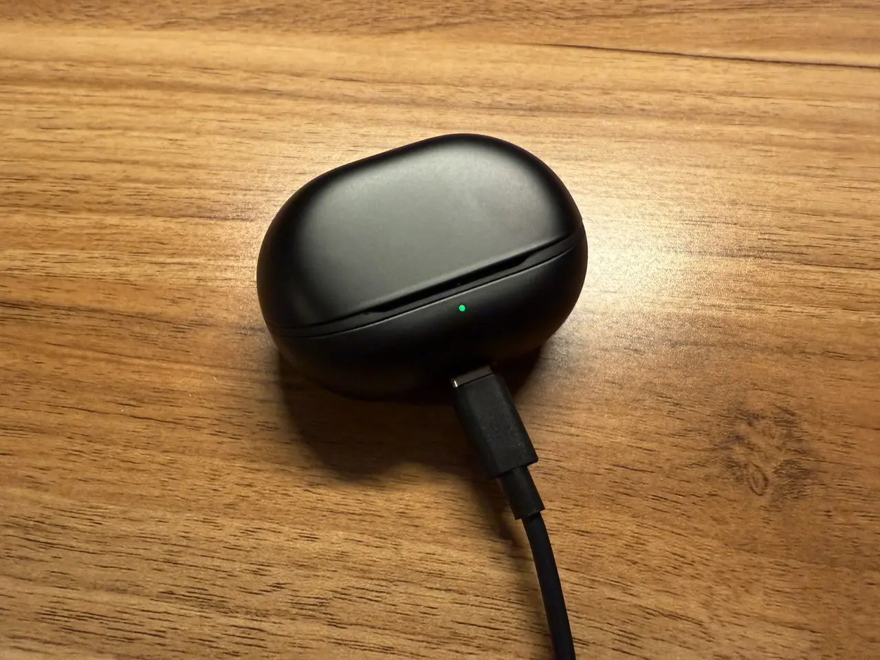 製品には収納とイヤホンの充電器を兼ねた、充電ケースが付属します。USB Type-C有線充電に対応する一方で、ワイヤレス充電は非対応です。