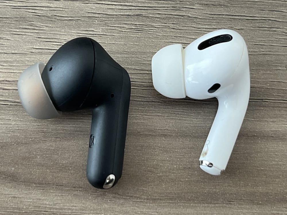 ▼イヤホン本体の大きさや重さも、AirPods Proと体感的には大差ない。