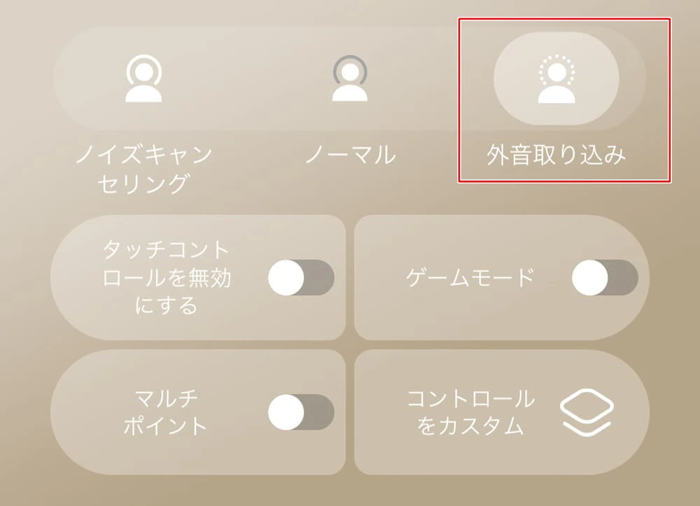 ▼外音取り込み機能、ノイズキャンセリング機能などの切り替えが可能。
