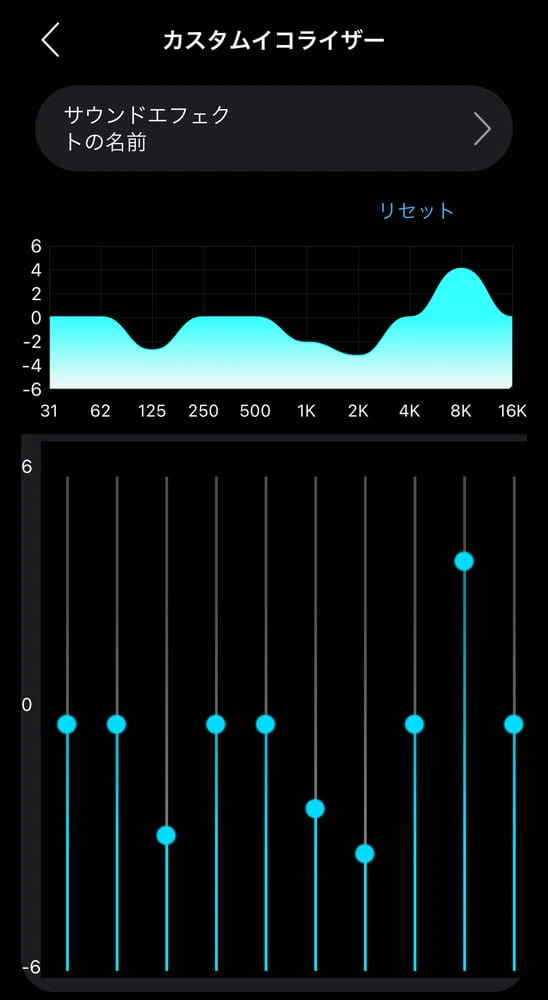 公式アプリにはイコライザー(EQ)調節機能が用意されており、イヤホンの音質を自分好みにカスタマイズすることが出来る。