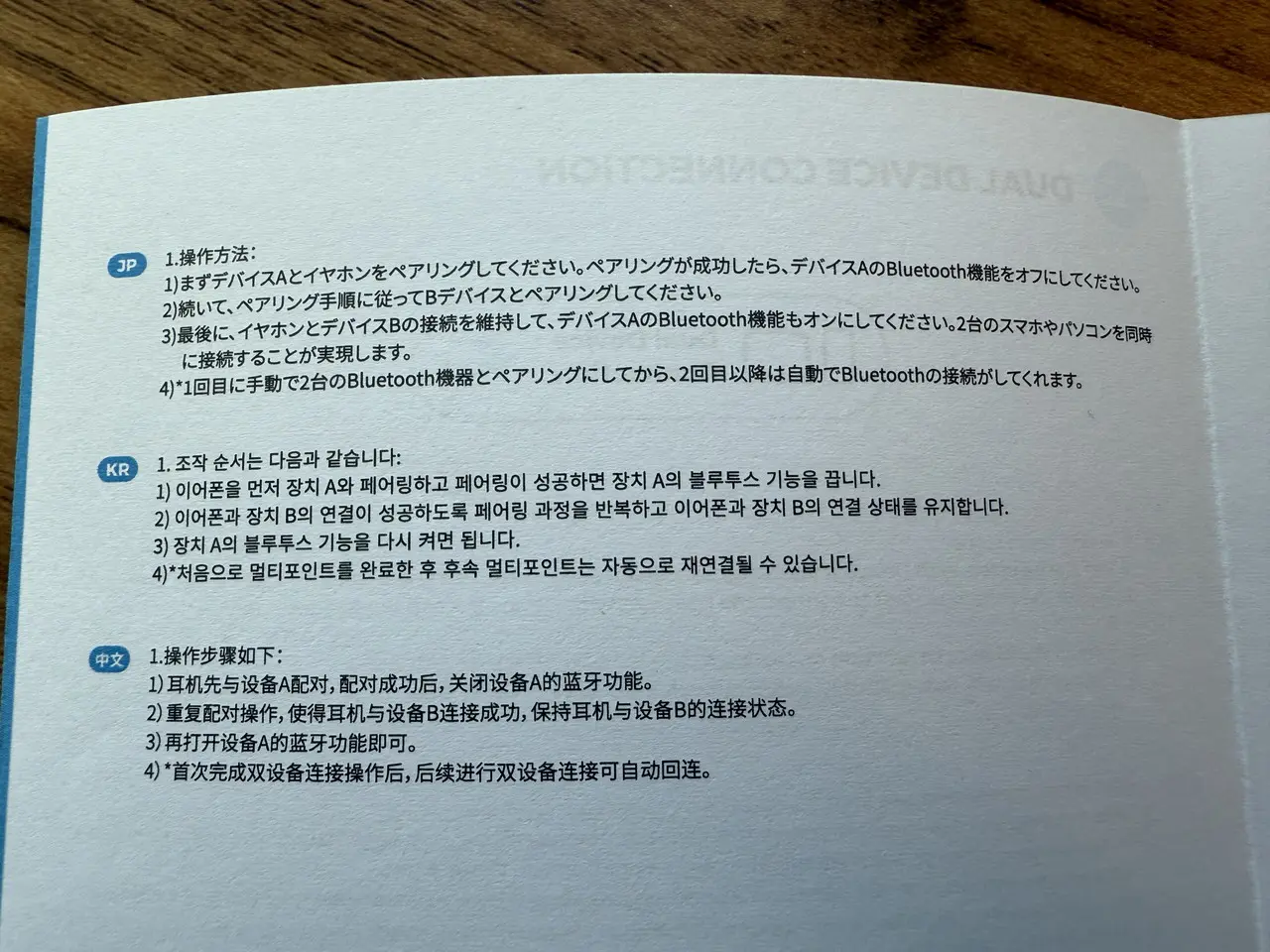 そして一台目のデバイスに接続した状態でイヤホンをケース内に収納し、ケース前面のペアリングボタンを長押しすることで、二台目のデバイスでもBluetooth接続を行うことができる。