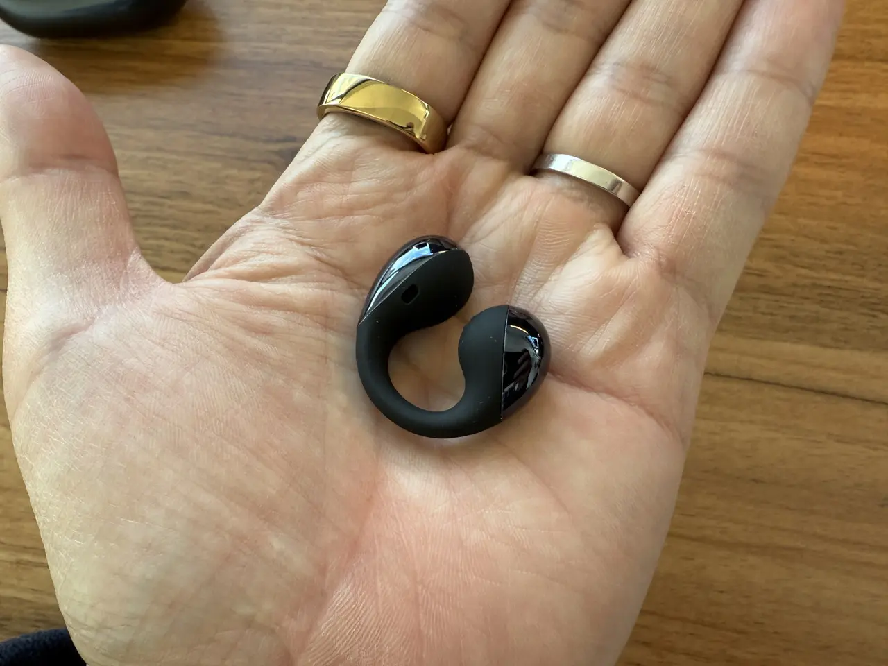 イヤーカフ型デザインのおかげで、一般的な耳たぶの外周にかけるタイプのオープンイヤー型イヤホンよりも自然かつ快適な装着感を実現できている。個人的には、いままで試してきたオープンイヤー型イヤホンの中で、最も優れた装着感であると感じた。