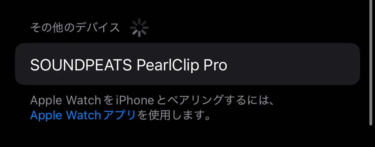 そしてデバイス側で、本製品の正式名称である "SOUNDPEATS PearlClip Pro" が表示されるので、選択することで接続(ペアリング)が完了する。