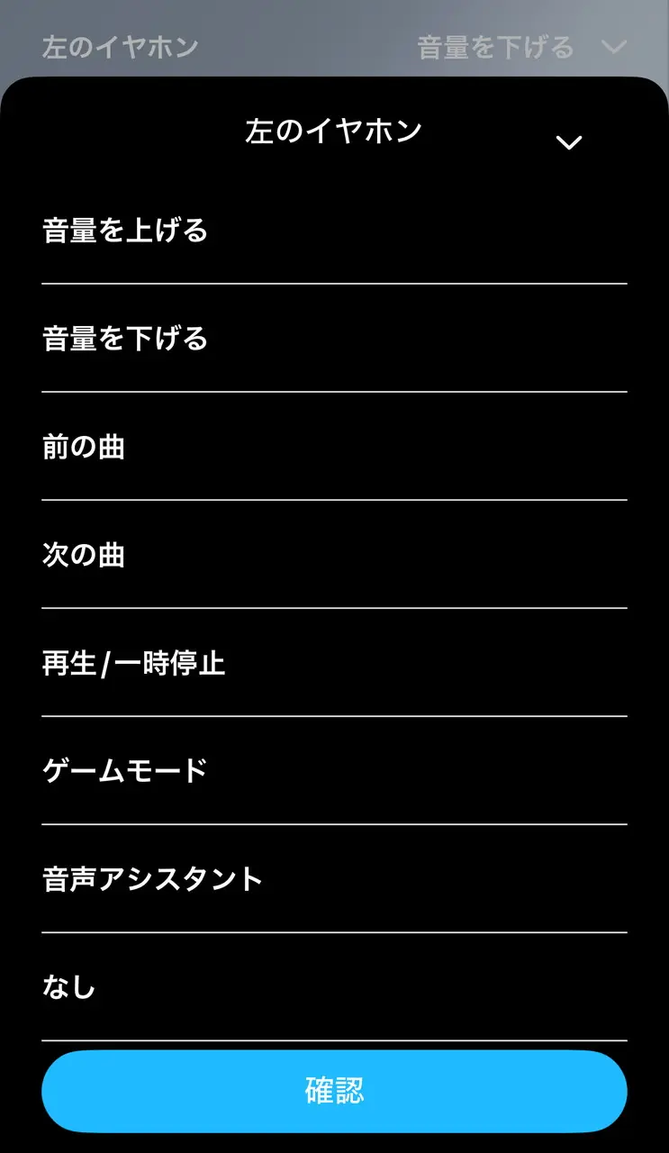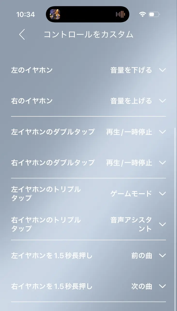 そしてアプリ上では、イヤホン側面のタッチパネルを操作した際の機能を自由にカスタマイズすることができる。