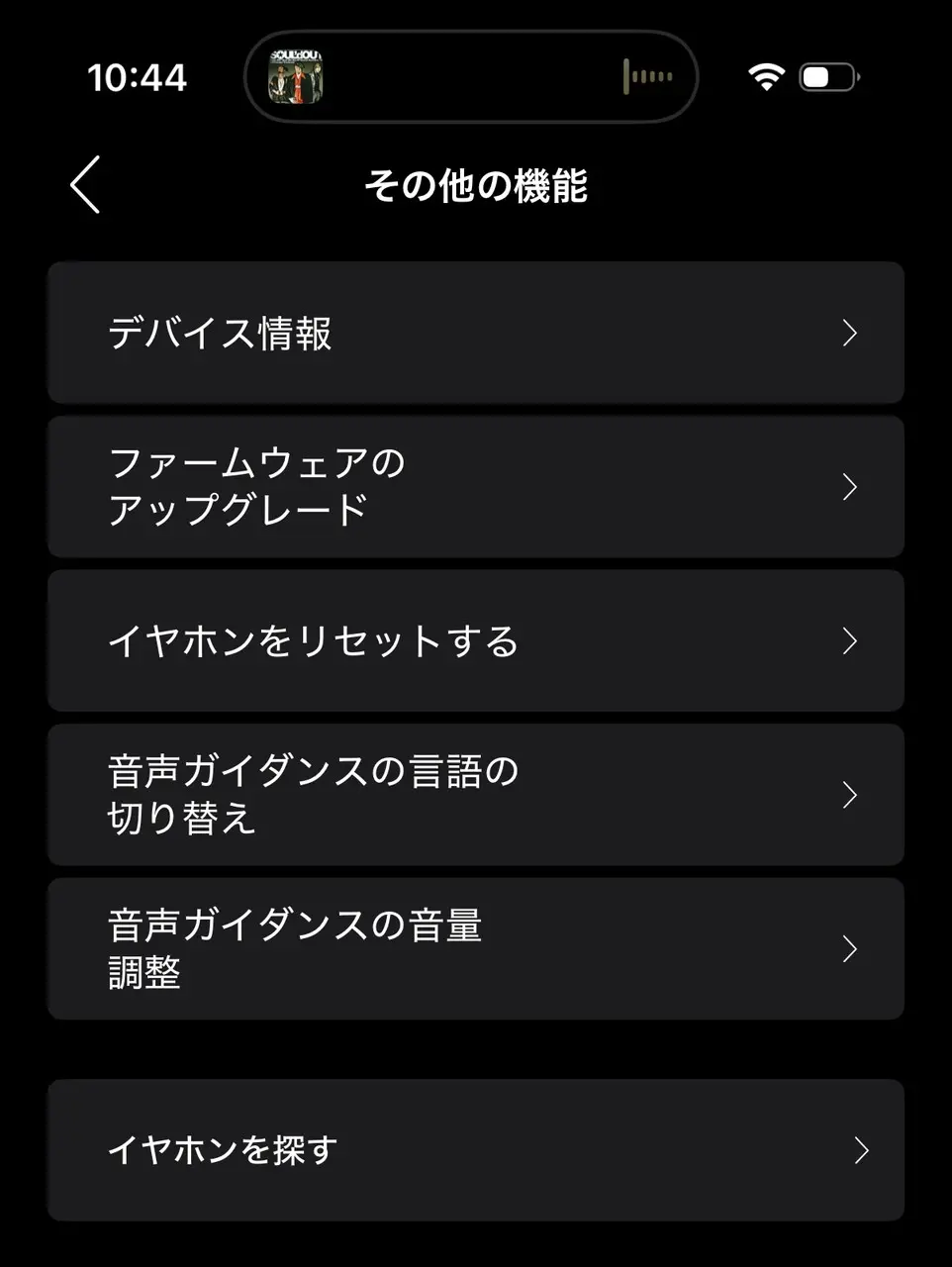 ▼ファームウェアのアップグレードや「イヤホンを探す」等の機能も利用可能。