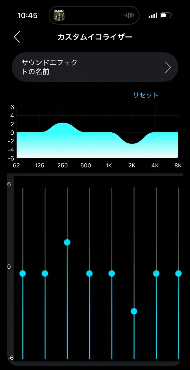 音響にあまり詳しくない方にとって、イコライザーをイジるのは敷居が高いが、このようにプリセットがいくつも用意されているおかげで、音の変化を気軽に楽しめるのは便利な機能であると感じた。