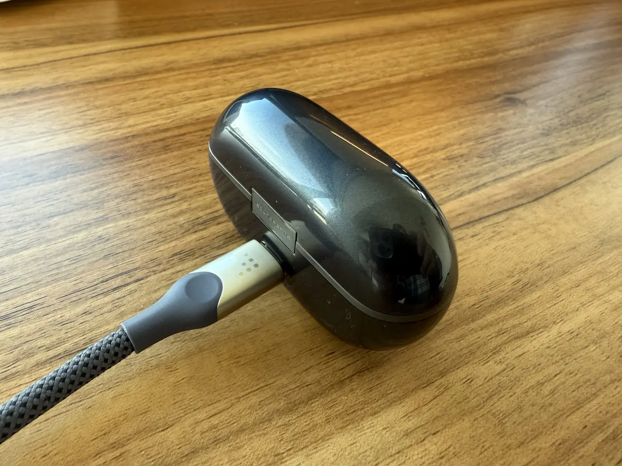 製品には収納とイヤホンの充電器を兼ねたチャージケースが付属する。Type-Cケーブルによる有線充電に対応。ワイヤレス充電には対応していない。