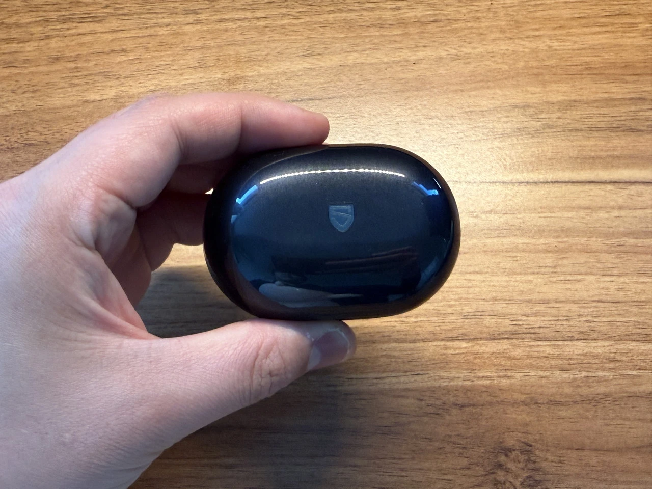 充電ケース自体は、ワイヤレスイヤホンとしてオーソドックスなデザインです。