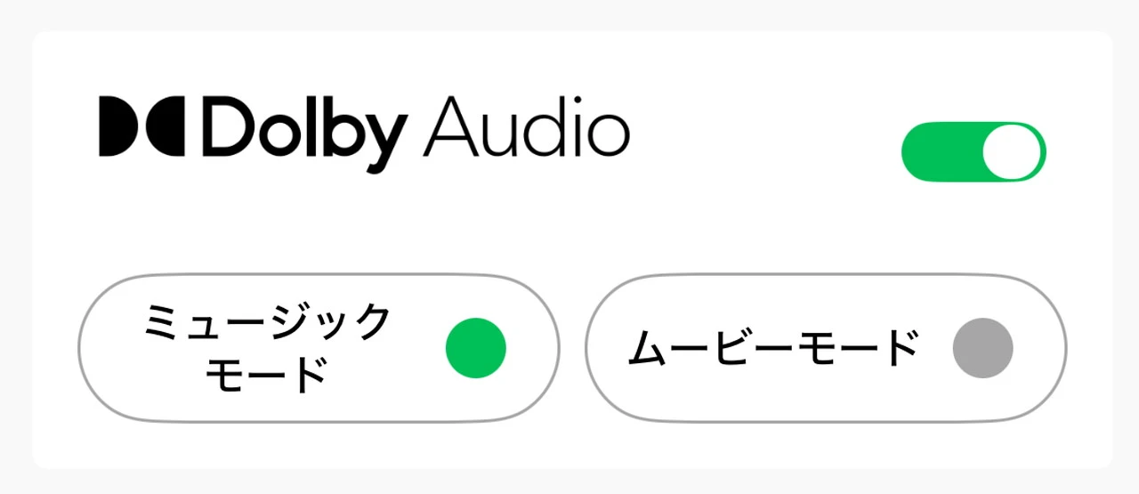 そして本機は、アプリからDolby Audioの切り替えが可能です。オンにすると音に奥行きと広がりが生まれ、音楽・動画どちらでも臨場感が向上しました。個人的には常時オンでの使用をおすすめしたい機能です。