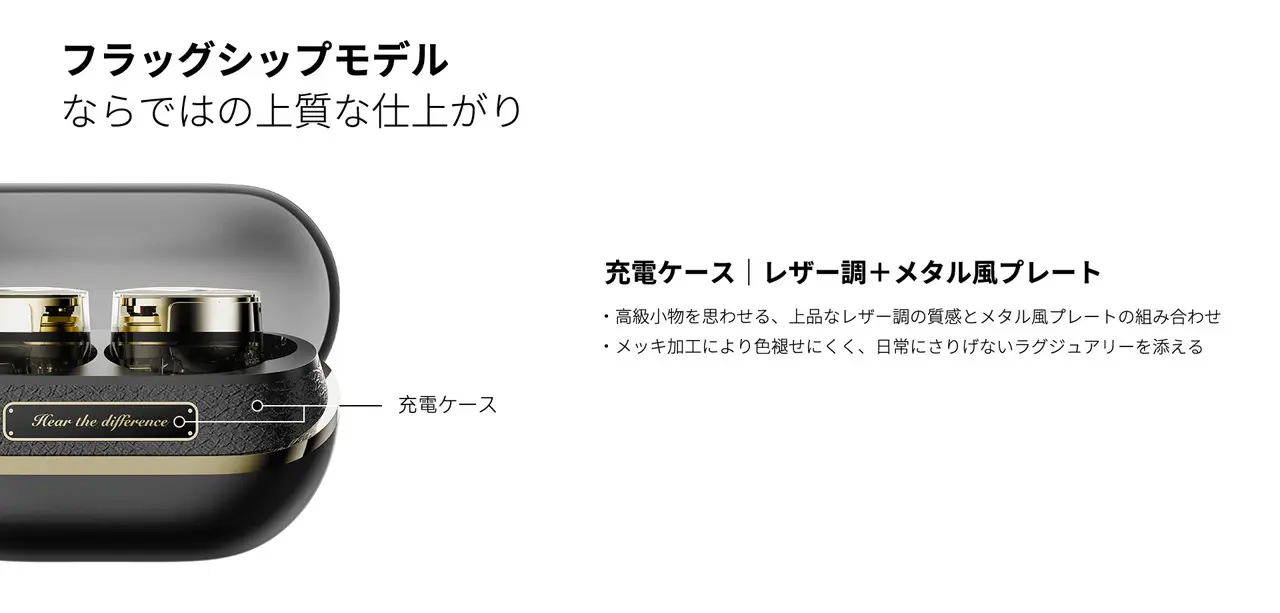 イヤホン本体および充電ケースには、税込15,880円という価格にふさわしい高級感があり、手にすると満足感と所有感を得ることができるでしょう。