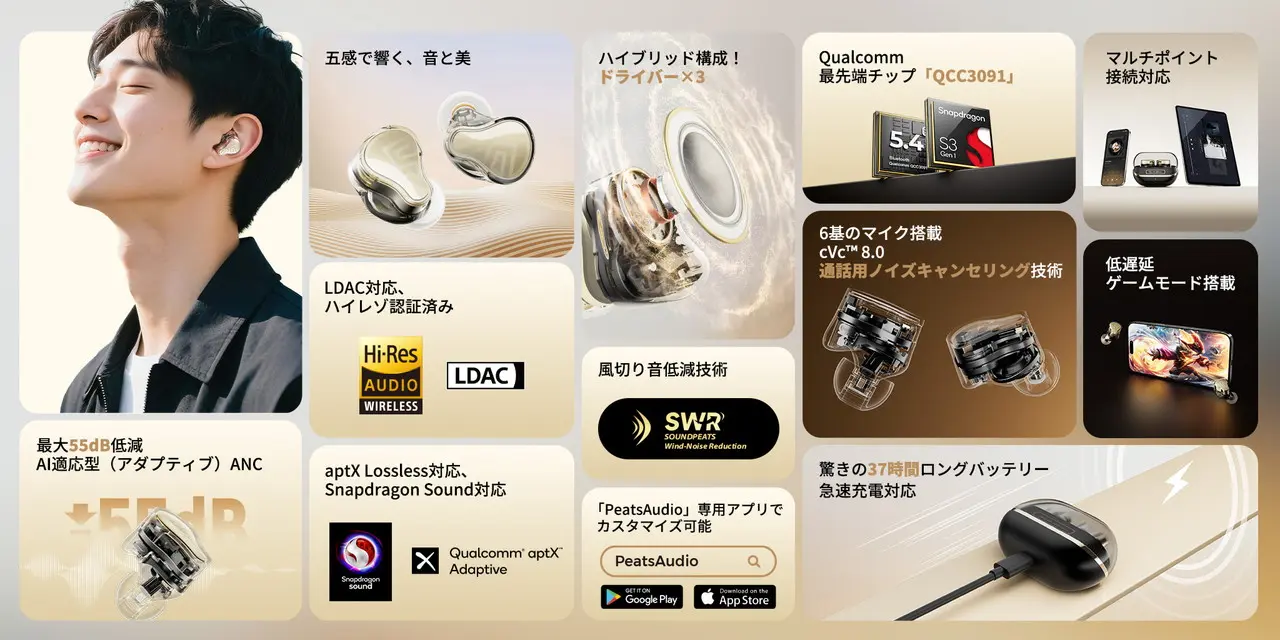 2025年5月23日(金)、無線型のイヤホンを数多く手掛けるSOUNDPEATS(サウンドピーツ)は、同ブランドの最新ワイヤレスイヤホン『SOUNDPEATS H3』をリリースしました。
