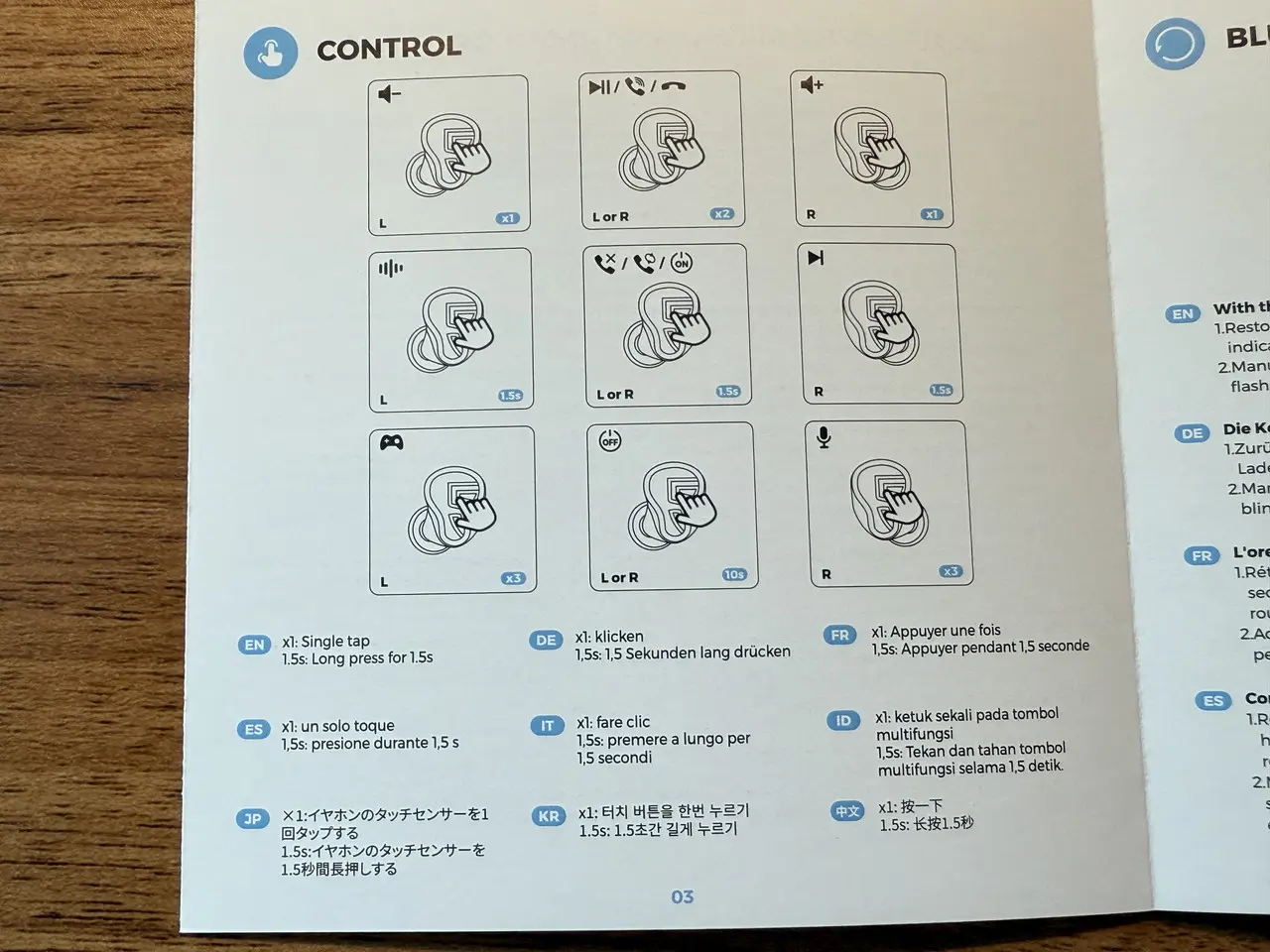 本製品では、両耳イヤホンの側面に搭載されたタッチパネルに触れることで、様々な機能へ瞬時にアクセスできます。