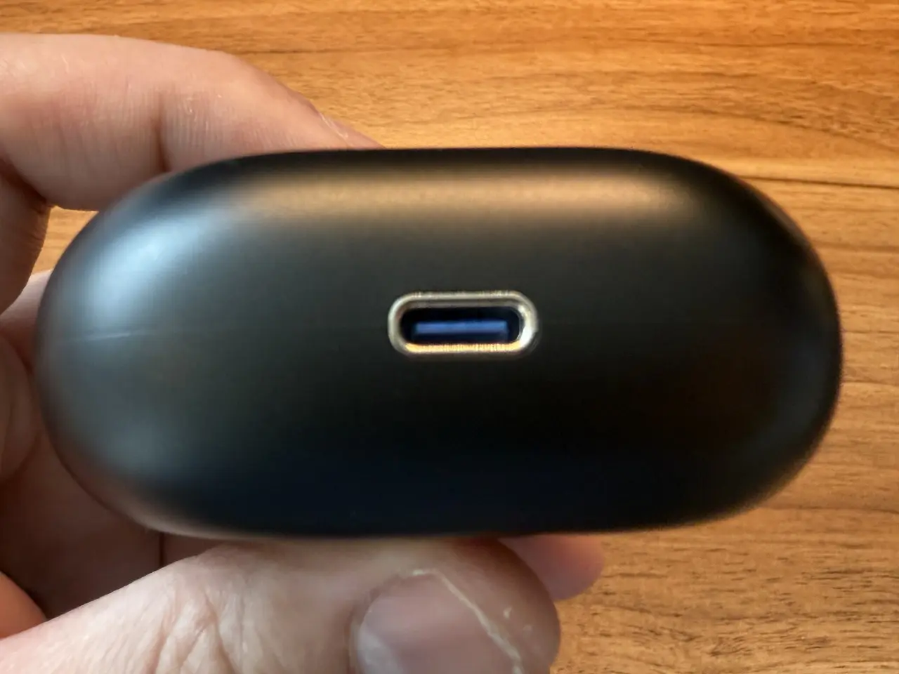 パッケージには、収納とイヤホンの充電器を兼ねた充電ケースが付属します。USB Type-Cケーブルによる有線充電に対応。