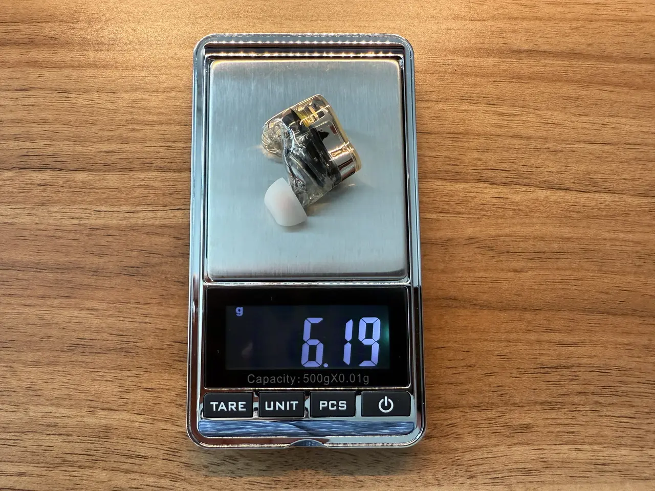 ▼イヤホン単体は実測で約6.19gと十分に軽量な部類。