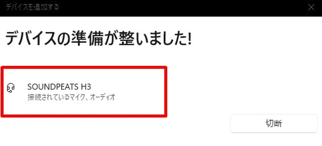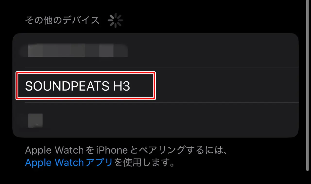 するとデバイス側で "SOUNDPEATS H3" が表示されるので、選択することで接続(ペアリング)が完了します。