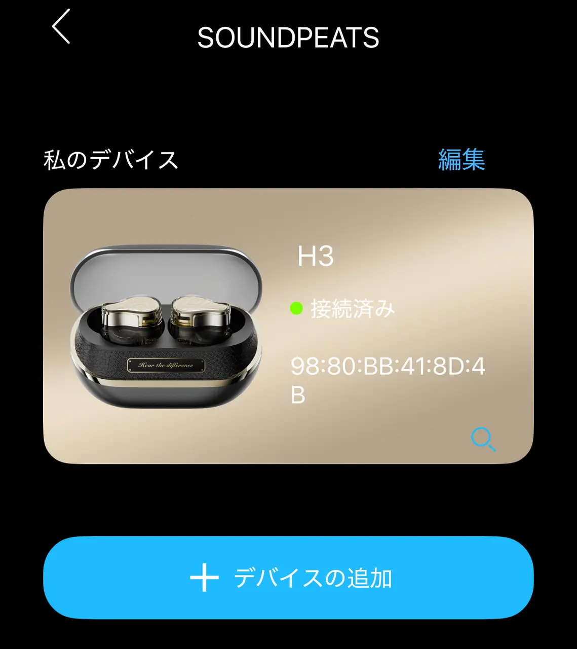 イヤホン起動中にアプリを開くと、"SOUNDPEATS H3" を追加できます。